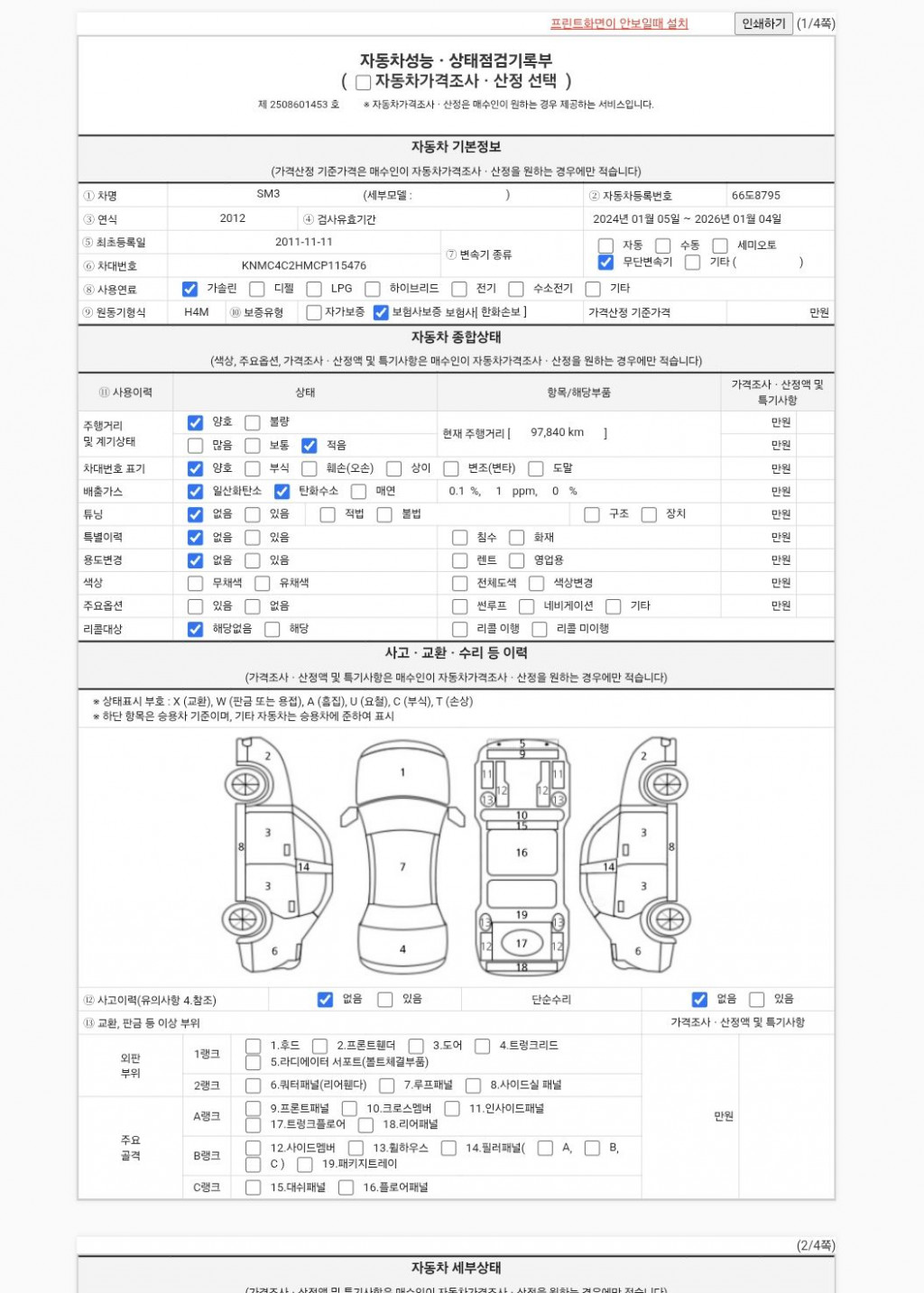 | 외판부위 | ○ 후드 ○ 프론트 휀더 ○ 도어 ○ 트렁크리드 | ||